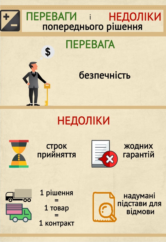 En la práctica, los funcionarios de aduanas muy a menudo evitan tomar decisiones preliminares y encuentran motivos existentes o inexistentes para denegarlas. Esto lo confirman incluso las estadísticas oficiales. En el primer trimestre de 2017, todas las aduanas de Ucrania tomaron solo 40 decisiones preliminares.